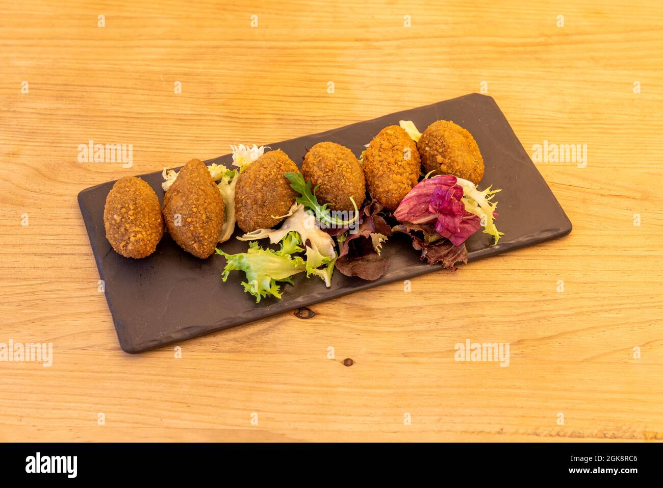Traditional Spanish Snack Croquettes Fried in Oil, with Yellow Cream Croquettes Spanish spanish ham croquettes recipe (croquetas de jamon serrano) although “croquetas de jamón serrano” are not really. learn how to make croquetas de jamón, a classic spanish dish with ham and bechamel filling. ham croquettes or “croquetas de jamón” are a beloved spanish delicacy, perfect for any occasion. croquetas de jamón, or ham croquettes, are a staple. Croquettes Spanish.